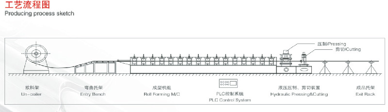 9、機組包括:成型主機、液壓站、放料架、成型剪、控制箱、出料架。