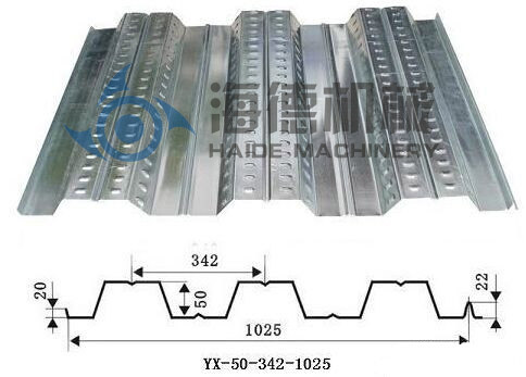 該機生產(chǎn)的樓承鋼板,用于樓層樓面板,具有波峰高、強度大等特點,而且生產(chǎn)自動化程度高,成本低廉。