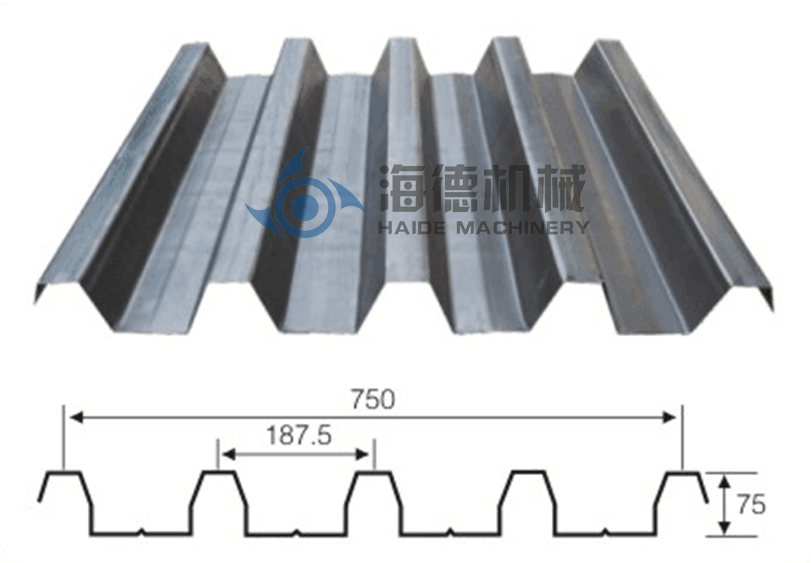 該機生產的鋼樓承板形狀簡潔、波度大、強度高、安裝時鋪置點焊鋼筋網后與混凝土現場澆灌結合,粘合性好。在高層建筑上既可以省去鋼模板又可以減輕樓層承載,在達到同等承受能力的前提下,使工程用鋼量減少,從節省投資。