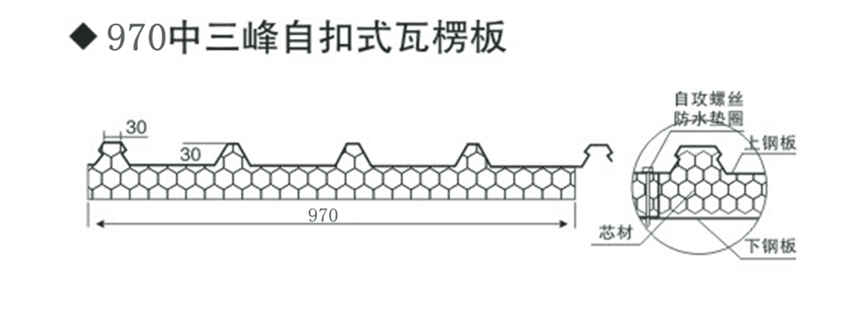 廣泛應用于輕鋼結構建筑的頂層及墻體,產品具有色澤鮮艷,無需二次裝飾的特點。