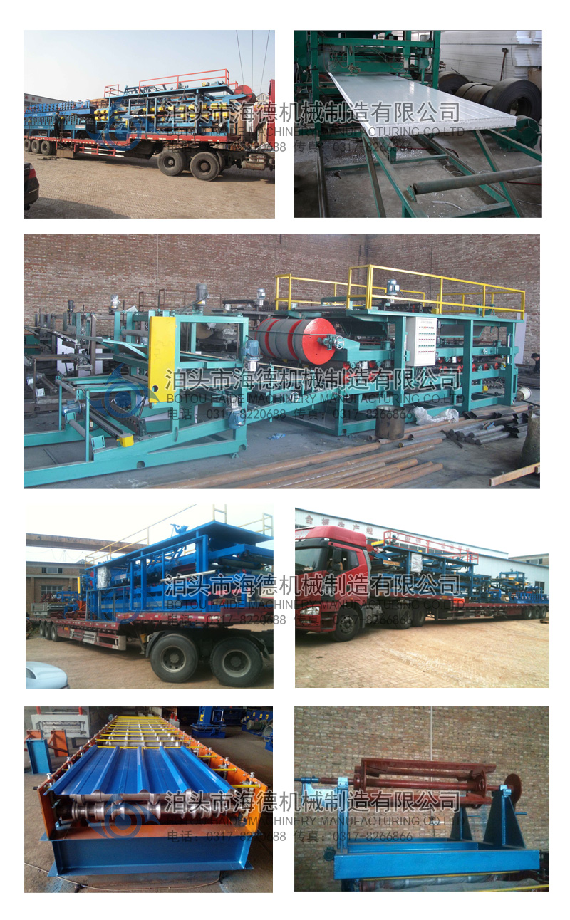 全套流水線放料機構、壓型機構(壓筋、涂膠、加溫、復合、卷邊、開槽、整邊、氣動、自動切割)組成,是生產工業廠房、倉庫等屋面板和墻板不可缺少的設備。